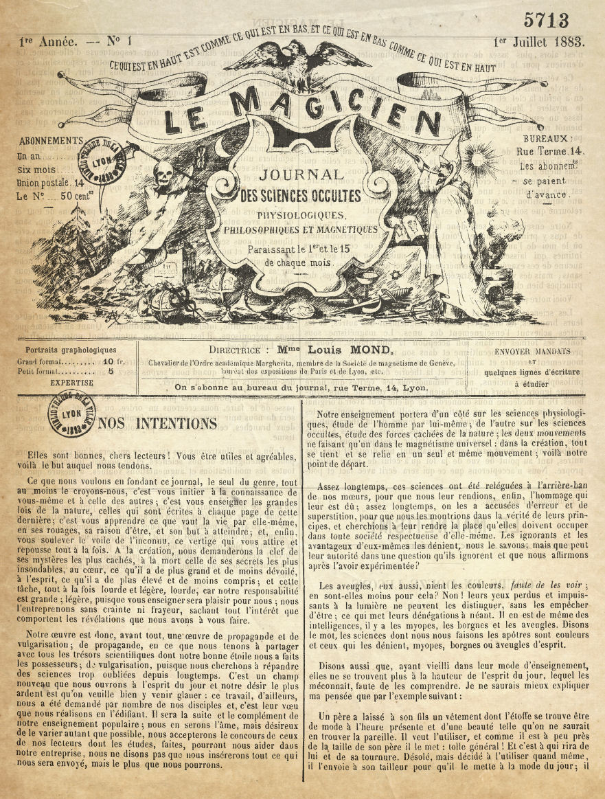 Periodico edito a Lione dal 1883 al 1887 e diretto da Madame Louis Mond (pseudonimo di Louise Reymond), si occupava a largo raggio di scienze di confine - dal magnetismo animale all’occultismo, dallo spiritismo all’esoterismo della Tradizione, dalla chiromanzia alla numerologia.