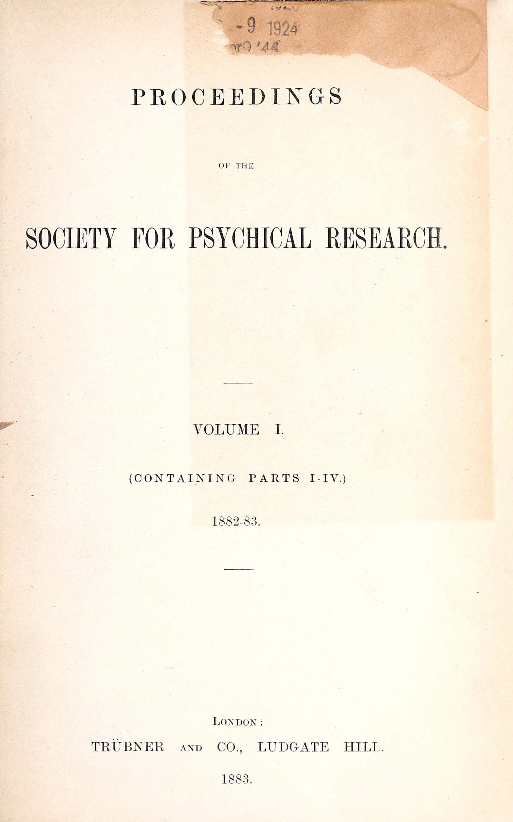 Proceedings of the SPR, Vol. I, 1882-1883.