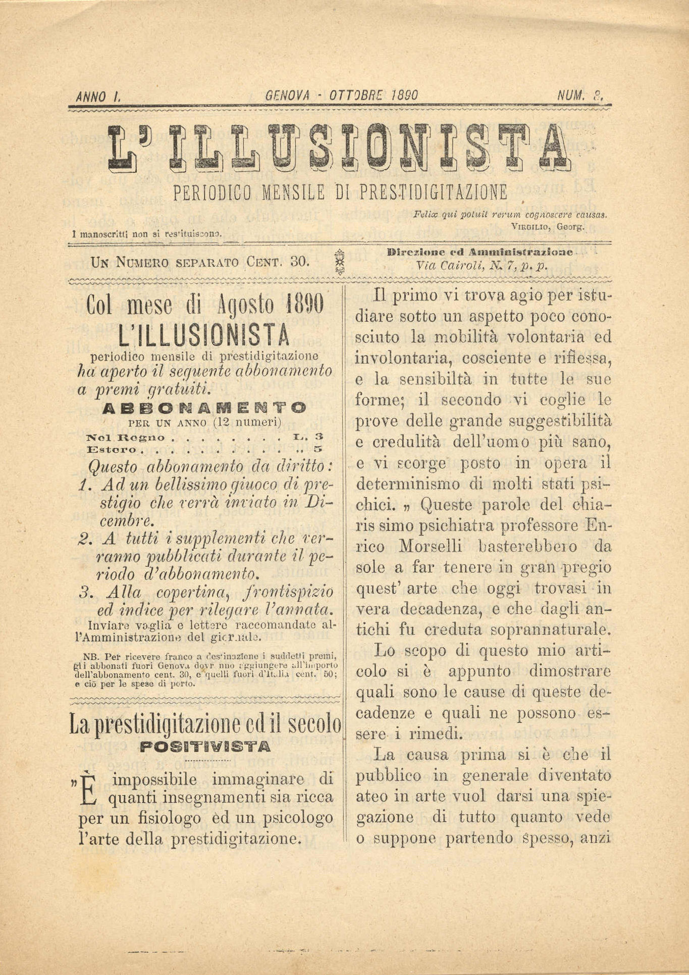 N. 1, Genova, agosto 1890.