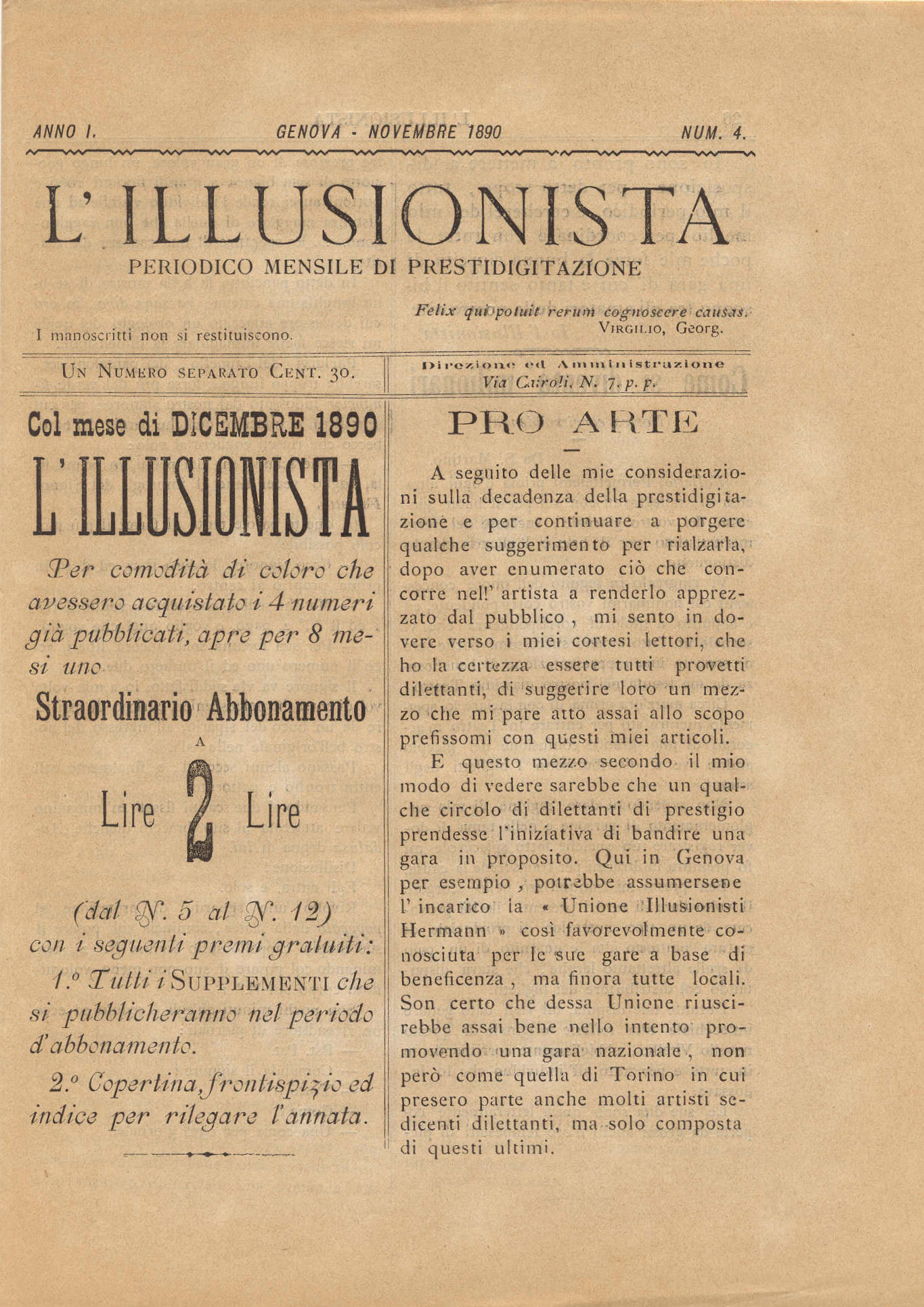 N. 4, Genova, novembre 1890.