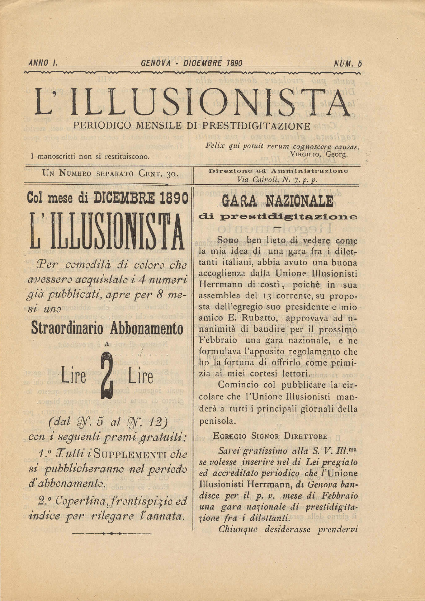 N. 5, Genova, dicembre 1890.