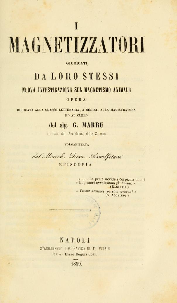 Del Magnetismo animale, ossia del Mesmerismo in ordine alla ragione e alla rivelazione