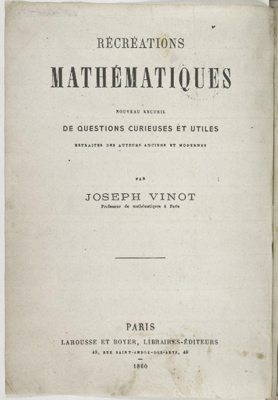 Récréations mathématiques: nouveau recueil de questions curieuses et utiles, extraites des auteurs anciens et modernes