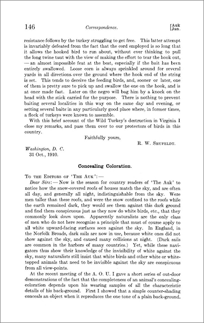 The Auk, Vol. 28, American Ornithologists' Union, gennaio 1911, pp. 146-148.