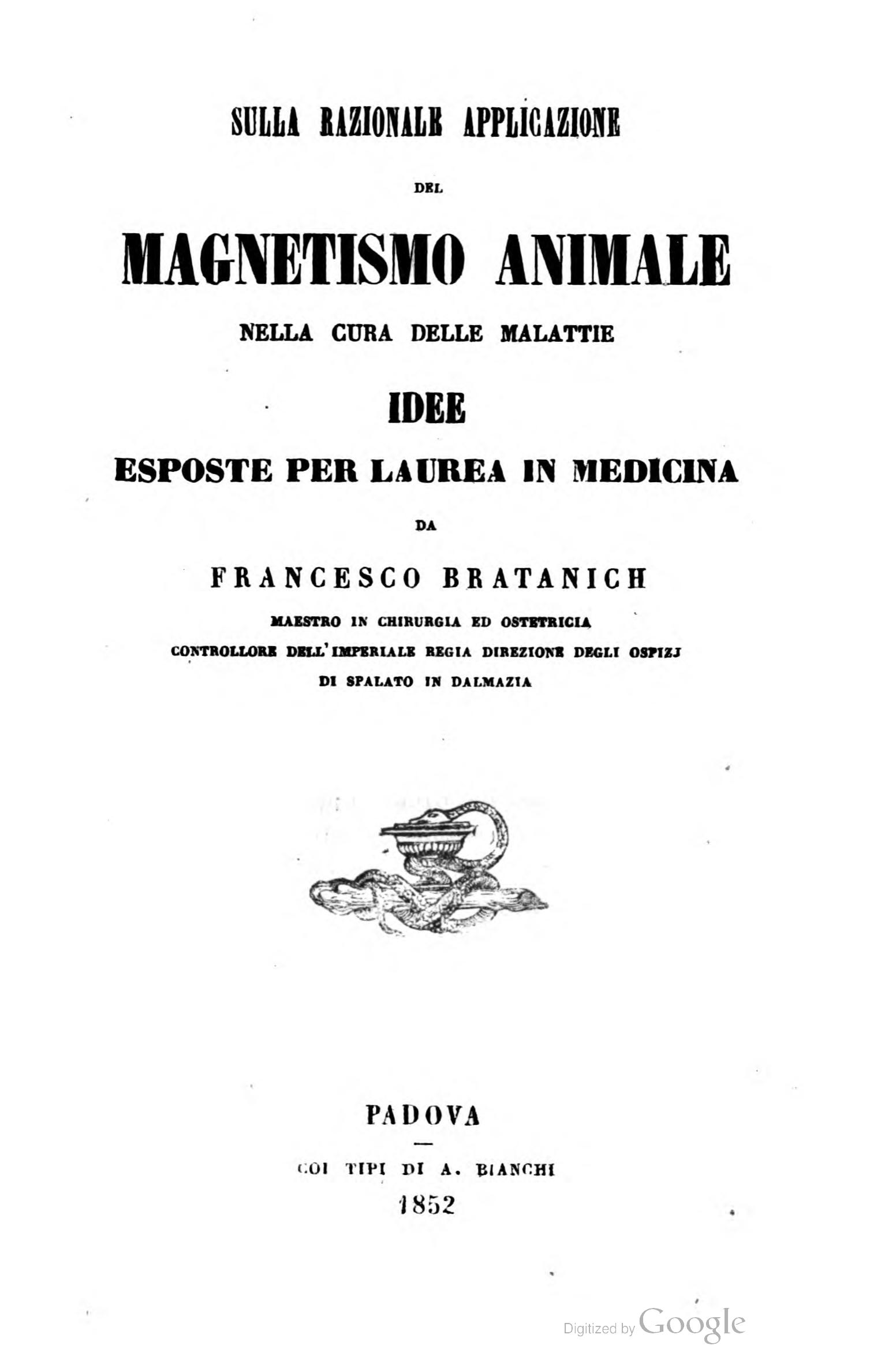 Sulla razionale applicazione del magnetismo animale nella cura delle malattie