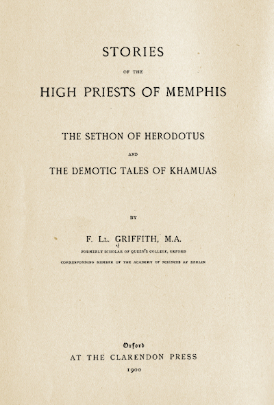 Francis Llewellyn Griffith, Stories of the High Priest of Memphis, Clarendon Press, Oxford 1900.