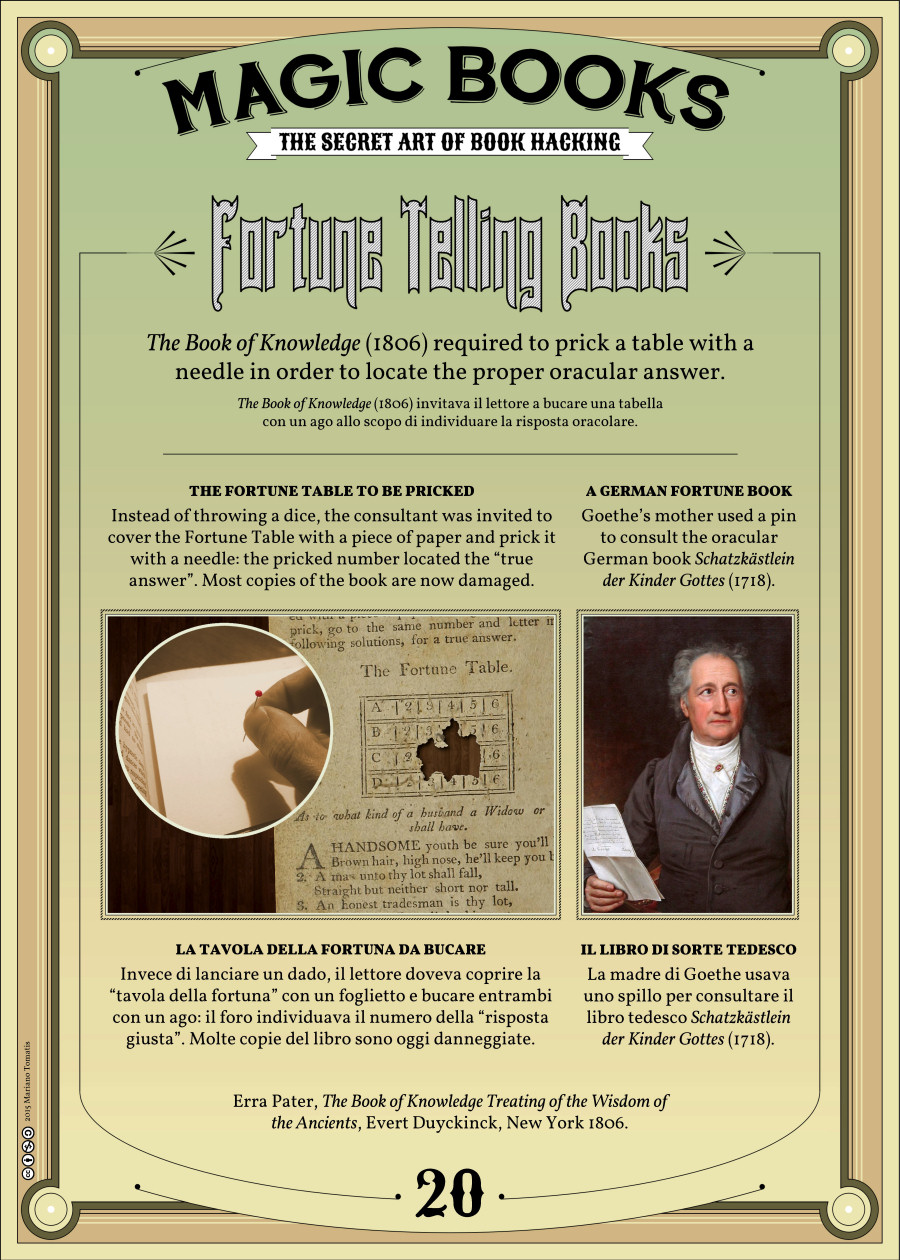 ![]() | Mariano TOMATIS Fortune Telling Books (20 of 30) The Book of Knowledge (1806) required to prick a table with a needle in order to locate the proper oracular answer. |