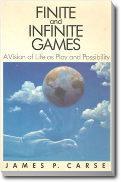 There are at least two kinds of games: finite and infinite. A finite game is a game that has fixed rules and boundaries, that is played for the purpose of winning and thereby ending the game. An infinite game has no fixed rules or boundaries. In an infinite game you play with the boundaries and the purpose is to continue the game. (1)