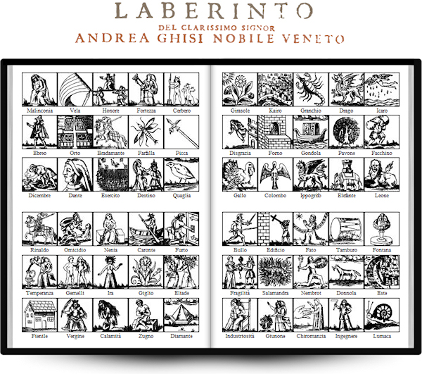 In 1607 Andrea Ghisi, a Venetian nobleman, published a peculiar book entitled Il laberinto del Signor Andrea Ghisi nel qual si contiene una tessitura di due mila ducento sessanta Figure, che aprendolo tre volte, con facilità si può saper qual figura si sia immaginata. The book begins with a dedication to the Prince of Mantua, Francesco Gonzaga (1577-1616), where the author describes his work as an “exercise of idleness”: a recreational activity with no practical purpose, useful to recover energies and restore body and soul.