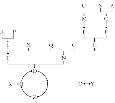 Since an arrow leads from U to M, in the first row of a Sogya table on the right of every U a M will appear. Iteratively, as an arrow connects the M and L, L will always appear to the right of M. Freely set the first letter on the left, and all subsequent will be determined by the rule.