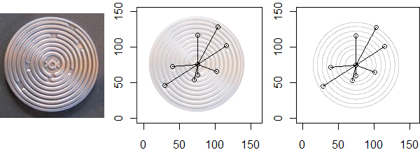 Starting from the picture, I record the coordinates of each notch, in order to plot an electronic version of the coin in R.