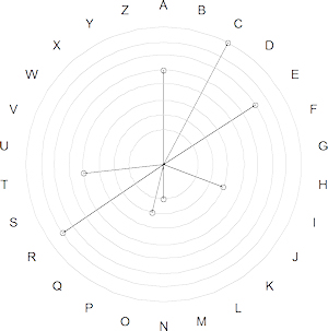 By adding the letters from A to Z around the outer circle, it is easy to identify the correspondence between the eight segments and related letters.