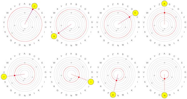 By reading them in order, from the segment corresponding to the outer circle to the innermost, the letters form the word CREATION. (2) .