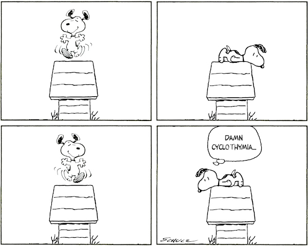 In this spirit, I have created a blog (in Italian) collecting ideas related to cyclothymia and its narrative frame, providing ‘cheerfully desperate’ material with the aim of fostering the awareness for such disorder and fighting its stigma.
