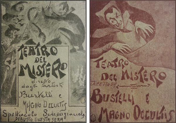 Queste erano le due locandine de “Il teatro dei misteri”, lo spettacolo di Magno Occultis e Ranieri Bustelli: