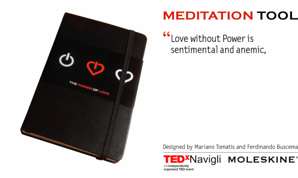 On March 20th, during TEDxNavigli, the Moleskine® notebook created by me and Ferdinando Buscema will be officially released. It is a meditation tool on the necessary balance between Power and Love in our contemporary society.