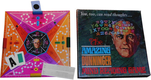 Imparare a leggere nel pensiero? Negli anni Sessanta lo si poteva fare con un gioco in scatola. O almeno, questa era la promessa del The Amazing Dunninger’s Mind Reading Game (Hasbro, 1967), il gioco di società ideato dal mentalista statunitense Joseph Dunninger (1892-1975).