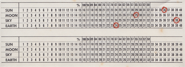 Un punteggio tra 82% e 100% indicherebbe poteri telepatici eccezionali. Un punteggio tra 70% e 81% indicherebbe buoni poteri telepatici. Un punteggio superiore al 50%, qualche potere telepatico. Concludere il gioco in meno di 32 mosse indica la presenza di trasmissione telepatica e preclude la possibilità che il risultato sia stato ottenuto per caso.