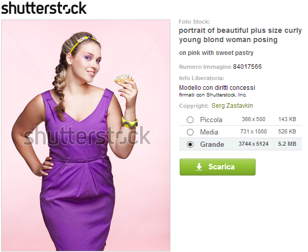 But I am horrified at insinuating the need to reduce the sizes of the (already) beautiful girl in green. shutterstock website agrees with my aesthetic, having titled the photo (1) of the Russian model “Portrait of beautiful plus size curly young blond woman posing on pink with sweet pastry.” (2)