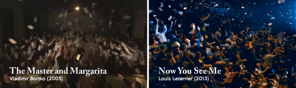 Here Woland performs the same mind reading effect portrayed in Now You See Me, when the mentalist reveals – thanks to his ability to read minds – the embarrassing escapade of a man in front of the horrified eyes of his wife. The betrayal of the officer is publicly exposed, and the show ends in the general laughter.