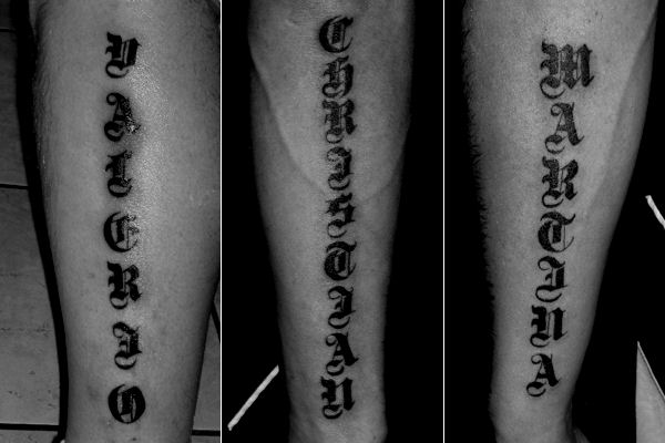 Facile? Non proprio. Di fronte alla seconda tavola, la nostra mente riceve stimoli inaspettati: la scrittura gotica nacque nel Medioevo, ma nessuno mai utilizzò le sole maiuscole per scrivere, né ebbe la malsana idea di scriverle una sotto l’altra. Un monaco avrebbe scritto così i tre nomi sopra: