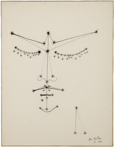 They talk about their common love: flying saucers. One of Cocteau’s portraits reminds of some constellations: joining together some points, he drew the picture of a face.