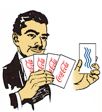 Sfogliando tra le mani i cartoncini, Mesmer mostrava che erano tutti uguali: su ognuno compariva la scritta “Coca Cola”. Qui il pubblico scoppiava a ridere. Chiarito il mistero, la tensione narrativa si risolveva. E un tiepido applauso salutava l’estrazione del cartoncino dalla tasca, interrompendosi bruscamente quando lo spettatore lo osservava sbalordito: contro ogni aspettativa, sul foglietto c’era scritto “acqua”.