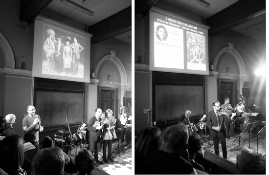Due fotografie dal concerto del 15 marzo 2014. A sinistra: Beppe Leonetti. A destra: il complesso diretto da Gian Luigi Panattoni, Stefano Ivaldi, Cristian Zambaia, Isabella Rizzo ed Elisabetta Panattoni.