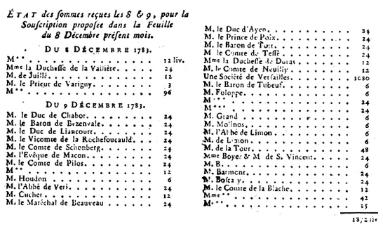 Subscription report from Journal de Paris, 11.12.1783, pp. 1436-1437.