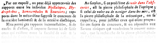 The burst of enthusiasm for the project, the imposing names on the list of subscribers, and the lack of precautions taken by the journal pointed to the same attitude. […] By February 7 [the journal] had overcome its embarassment well enough to print a letter promoting a technique for seeing in the dark, which was sponsored by a club of balloon enthusiasts convinced of the brotherhood of “nyctalopes, hydrophobes, somnambulists and water witchers.” (9)