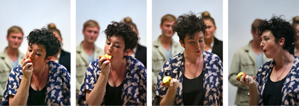 Charlotte Jarvis eating the forbidden apple. Photos by John East.