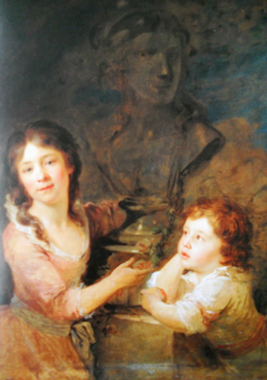 Giovan Battista Lampi “Ritratto di due bambine di casa Tomatis presso un busto” (1788-1789), olio su tela, cm 98 × 80 Vienna, Osterreichische Galerie Belvedere, inv. 2428.
