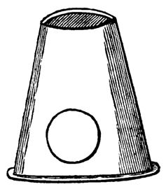 Allora qualcuno prenderà il bussolotto per vedere se vi sia un qualche trucco; quindi, tenendo la palla tra le due dita mediane della mano destra, si fissa negli occhi tale individuo e gli si dice: «Però non spostate il bussolotto dal suo posto finché non avrò pronunciato la mia formula di comando.» Così dicendo si rimette il bussolotto dov’era in precedenza, e nel riporlo in posizione vi si introduce segretamente la palla pronunciando le parole: «Hei Fortuna Nunquam Credo, Vade Couragious: ora vediamo se è finita là sotto oppure no.» Allorché là vedendola si crederà che vi sia stata condotta in virtù delle parole. (1)