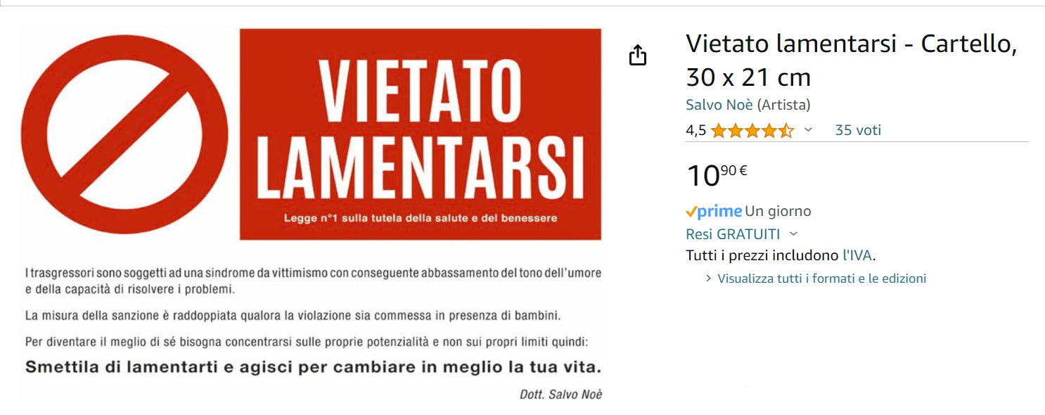 È in piena continuità con questa censura che, nel giugno 2017, Papa Francesco ha fatto installare sulla porta del proprio appartamento la scritta “Vietato lamentarsi”.