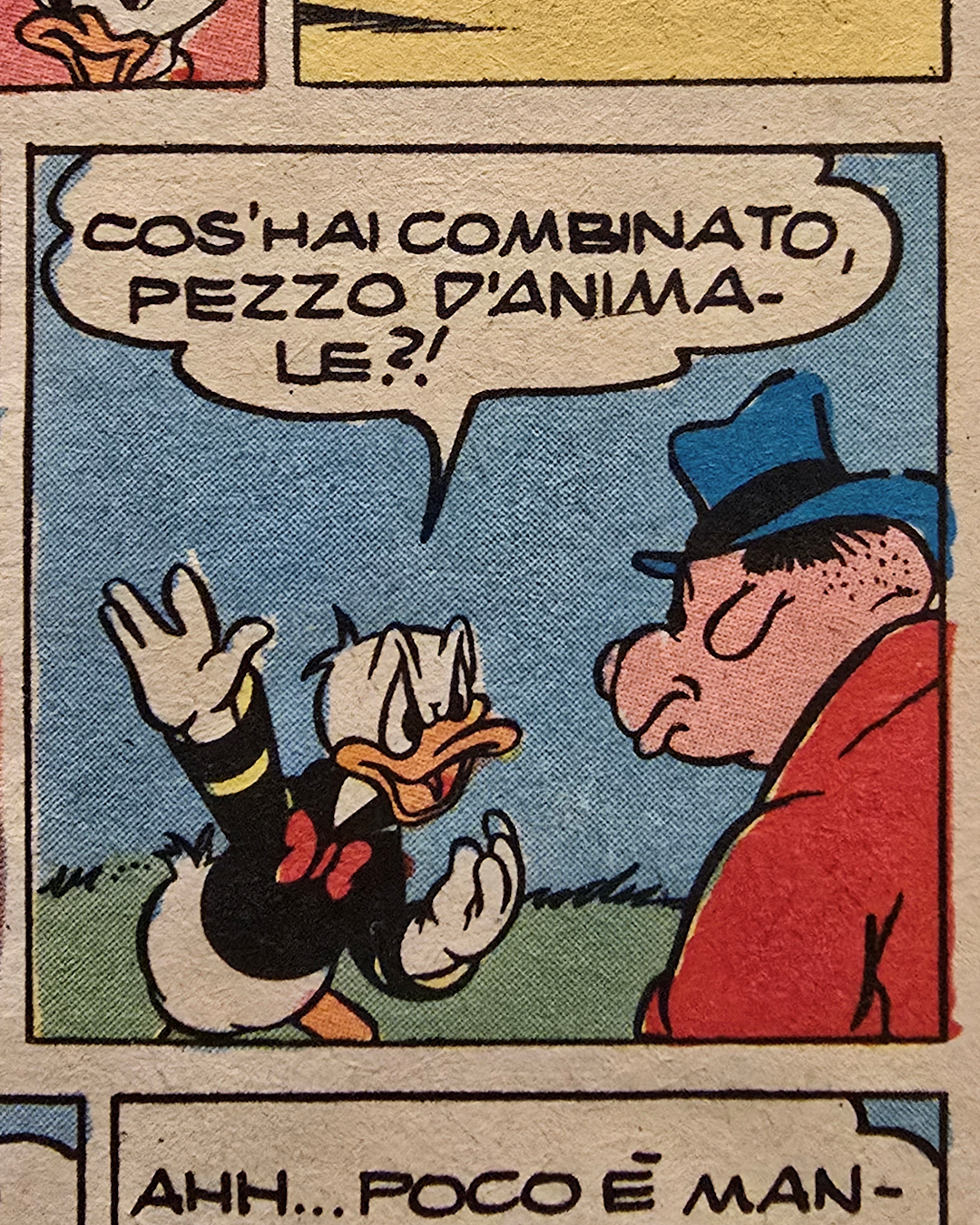 Il momento rivelatore arriva quando Paperino insulta l’autista di un camion che lo tampona, chiamandolo “pezzo d’animale” – benché la sua auto fosse invisibile e il conducente non potesse evitarla.