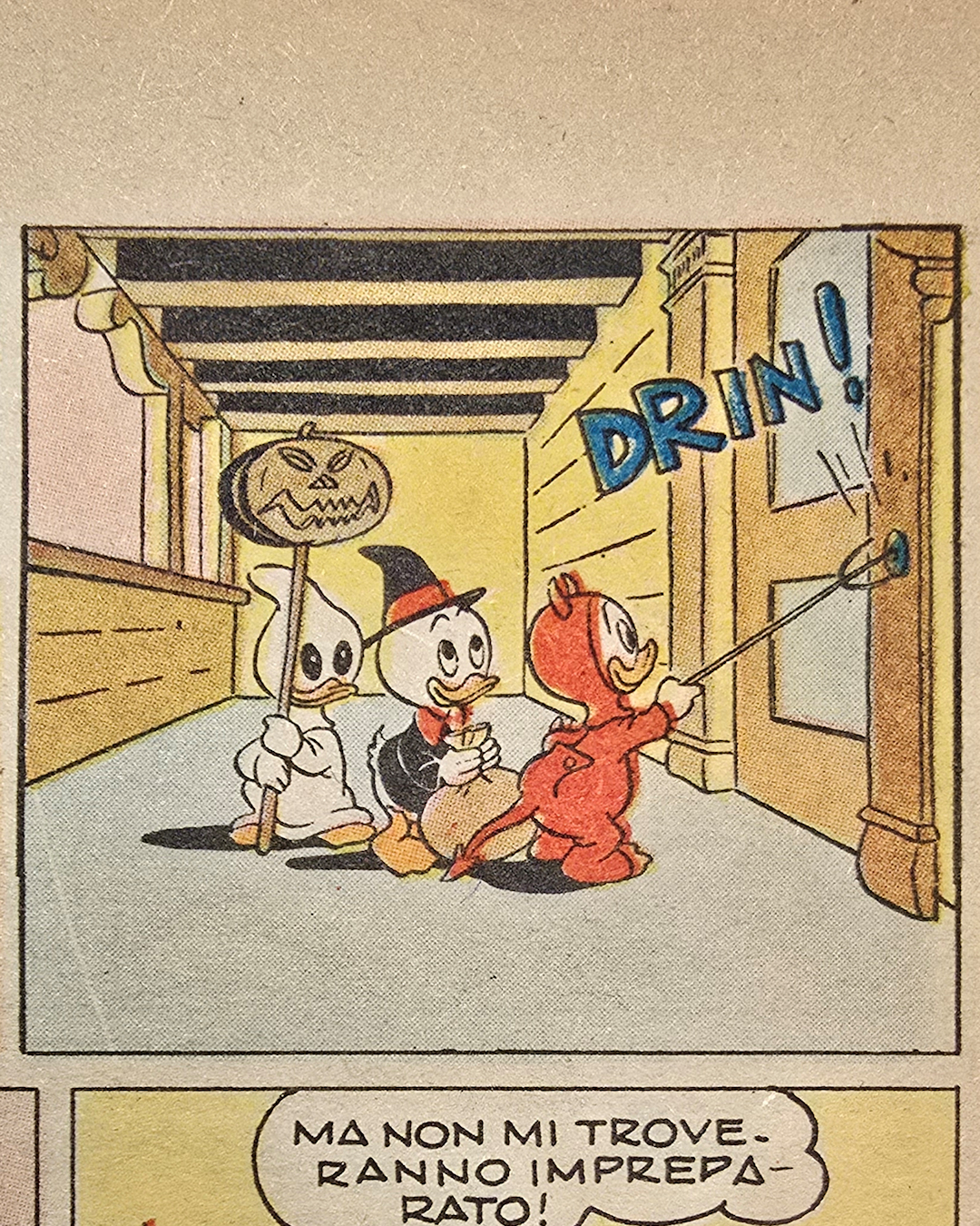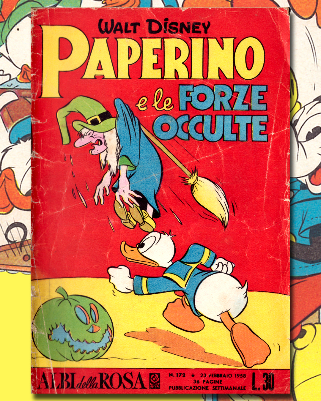 “Paperino e le forze occulte” (Albi della Rosa, n. 172, 23 febbraio 1958) racconta una notte di Halloween alla fine degli anni Cinquanta.