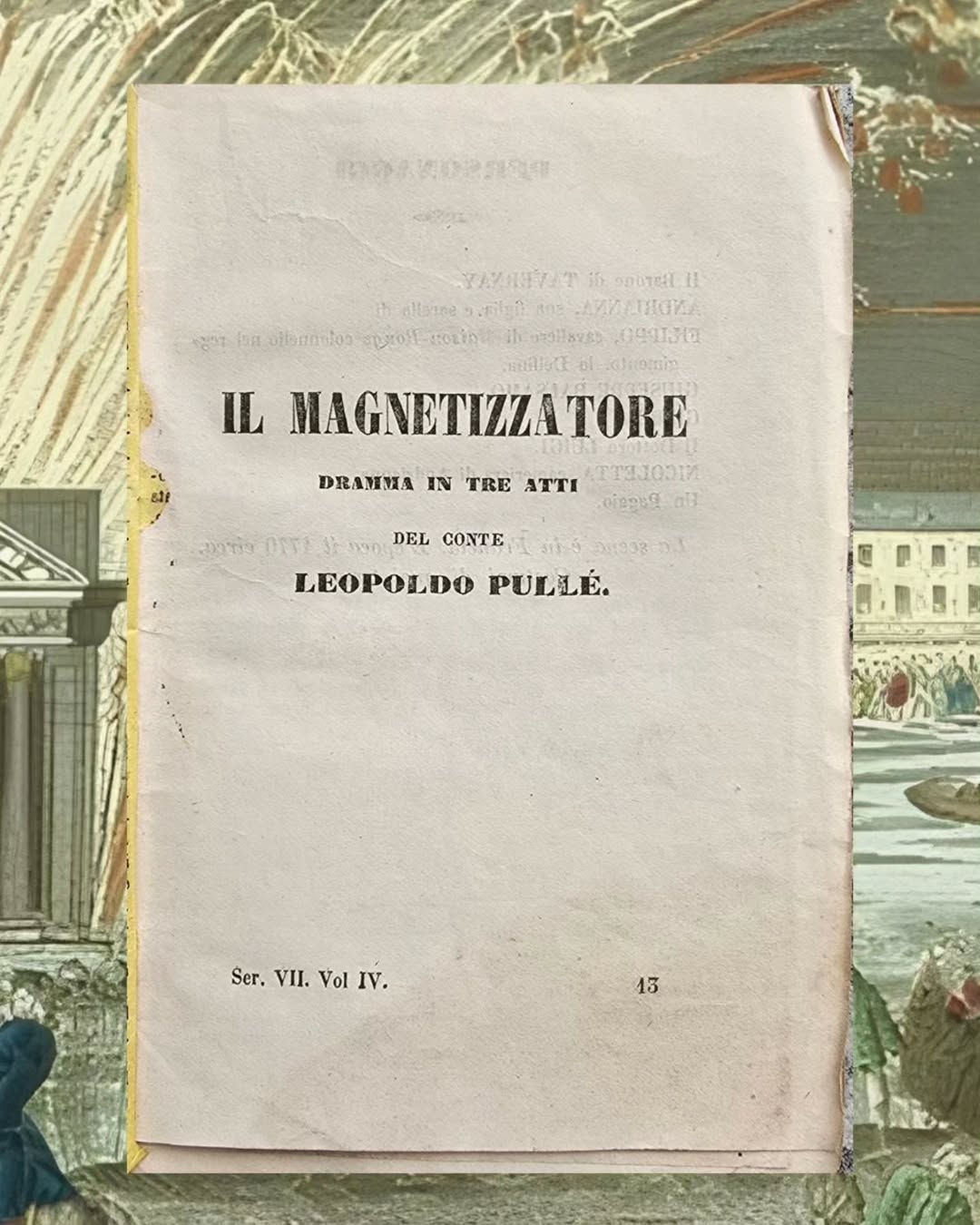 Da quella scena prende avvio Il magnetizzatore (1857), il dramma che Leopoldo Pullè scrive a soli 16 anni e che oggi ho pagato €1 a un mercatino delle pulci.