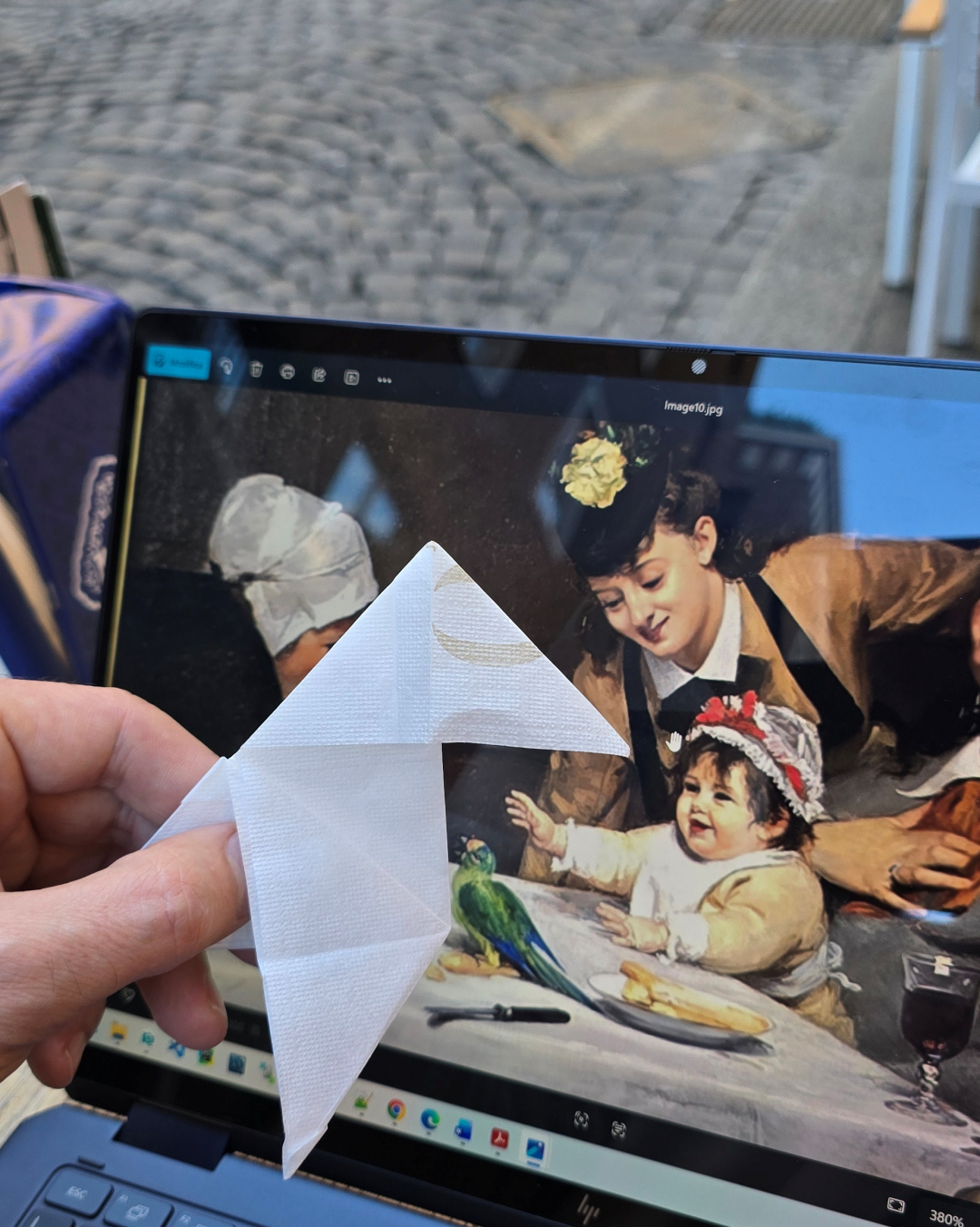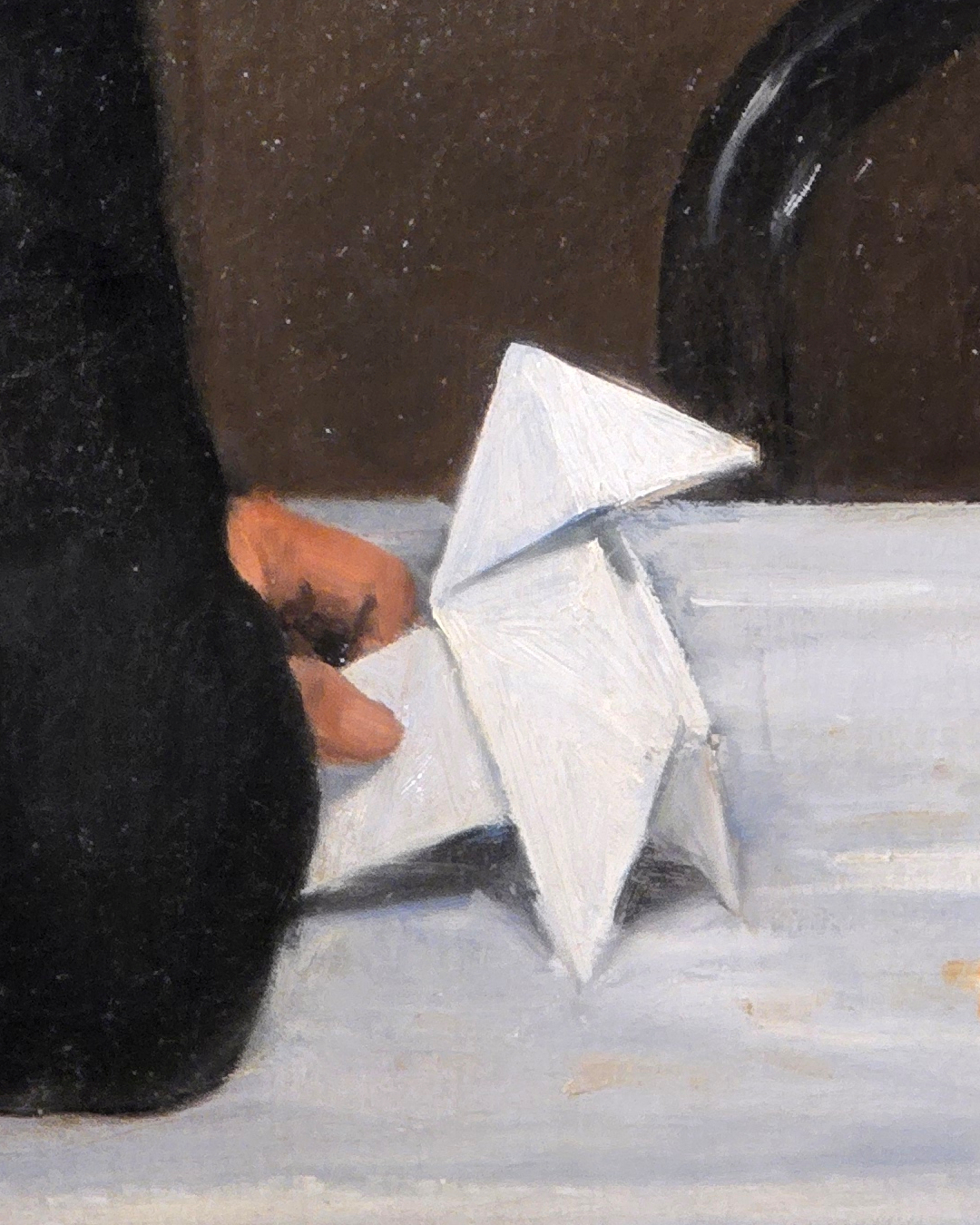 Ieri ha aperto a Roma la mostra “Impressionismo e oltre”. Fra le opere in esposizione al Museo dell’Ara Pacis, “Le donne che ridono” (1870) di Carolus-Duran presenta al centro una coppia spiazzante: un pappagallino a destra, il suo doppio in versione origami a sinistra.