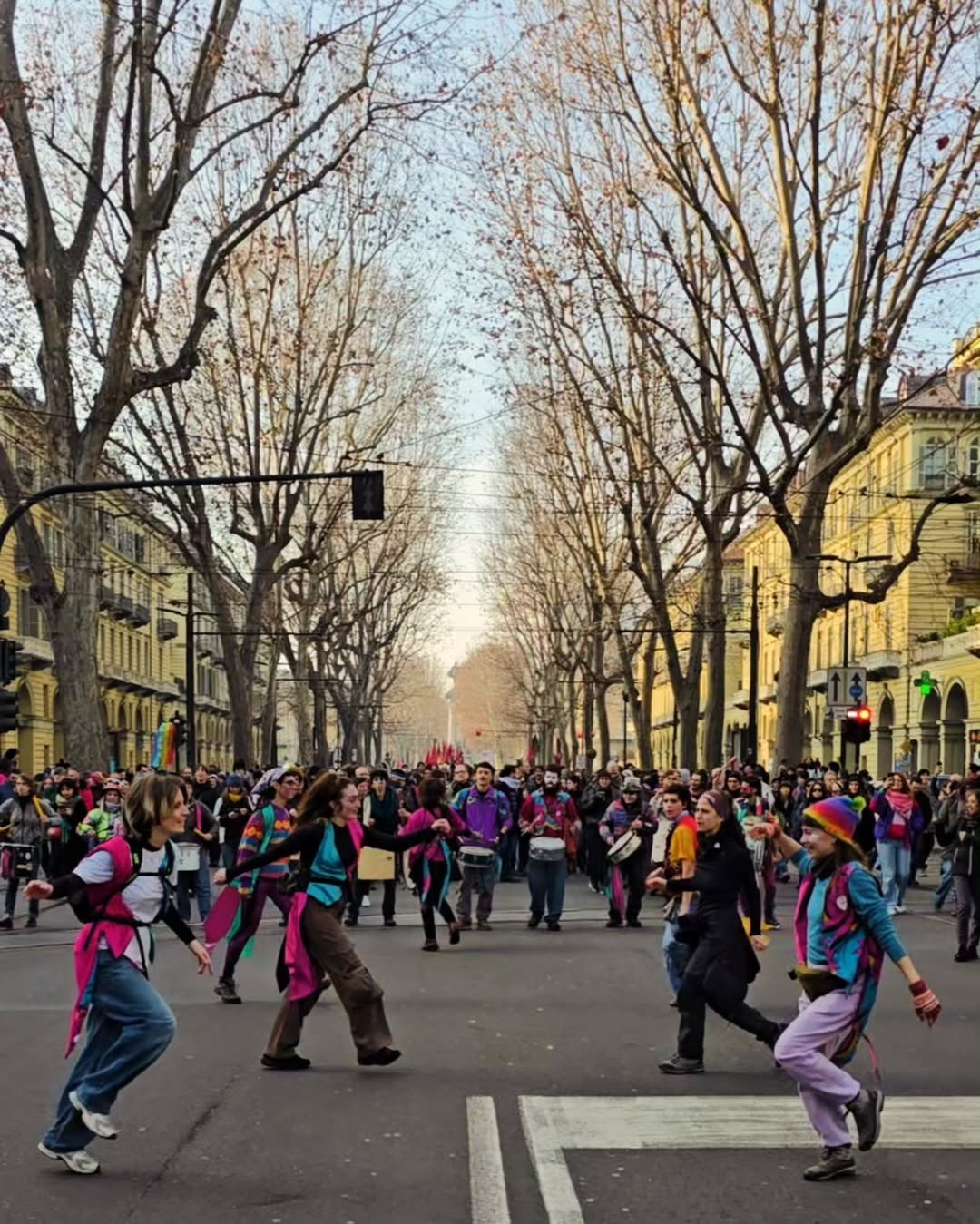 L’orchestra che suonava e le coreografie sull’asfalto mostravano corpi che a Legge e Ordine opponevano la gioia dionisiaca, condivisa e contagiosa.