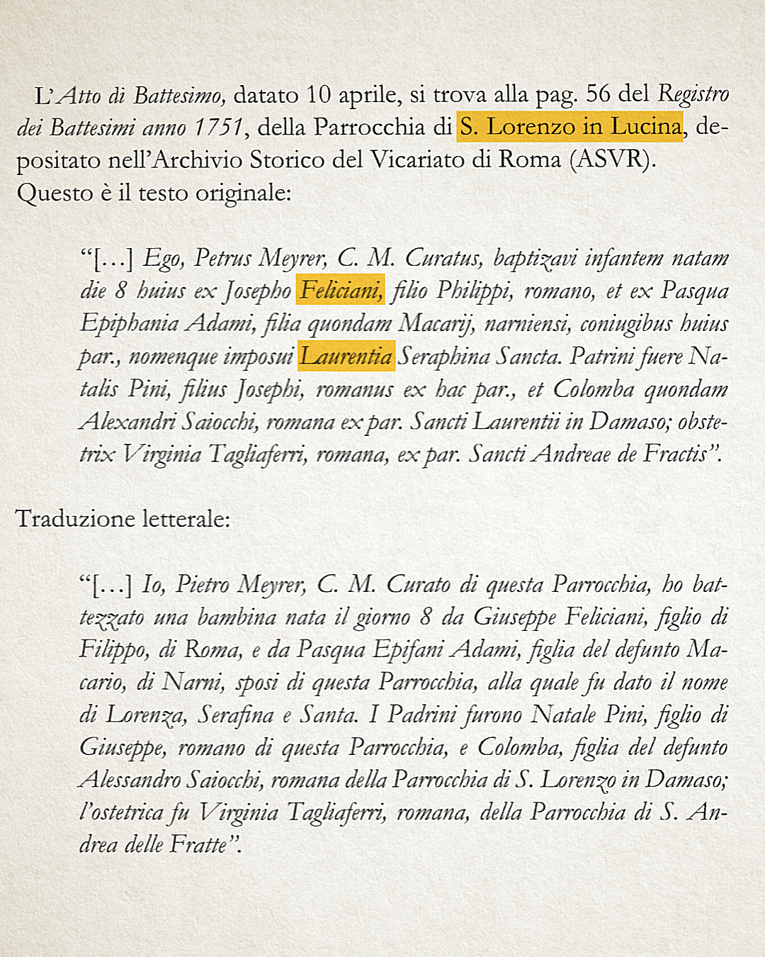 È per ribaltare il tavolo che negli ultimi due anni ho scritto la biografia di Lorenza (prossimamente in libreria). A chi oggi chiama San Lorenzo in Lucina “la chiesa dell’angelo della premier” vale la pena ricordare che tra i fantasmi di quel luogo ci sono donne meno celebrate. Nello stesso luogo, nel 1593 fu battezzata anche Artemisia Gentileschi: come Lorenza, la più grande pittrice del Seicento subì un processo in cui, da vittima di violenza, fu messa sul banco degli imputati e dipinta come donna di “cattiva vita” – mentre il suo aggressore cercava di rovesciare su di lei la colpa.