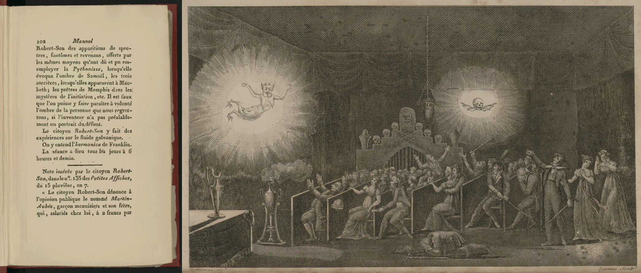 Nella Parigi del 1792 il mago Philidor presentava spettacoli di fantasmagoria, evocando a teatro gli spiriti dei defunti. Per mettere in scena un’illusione efficace, la lanterna magica con cui il prestigiatore proiettava i fantasmi doveva restare nascosta, ma perché la performance risultasse accettabile al pubblico dall’Età dei Lumi era necessario inquadrarla come un’opportunità didattica. Svelare il trucco avrebbe sottratto alle apparizioni ogni fascino; allo stesso tempo, una messa in scena troppo realistica sarebbe stata deprecabile. Per mostrare la sutura senza rompere l’incantesimo, Philidor concludeva lo spettacolo con un’apparizione talmente caricaturale da riportare tutti con i piedi per terra; come raccontava uno spettatore, “l’ingegnoso fisico termina questa strana rappresentazione facendo apparire il diavolo, cioè la caricatura grottesca immaginata dai sicofanti in saio e mitria per mettere paura alle donnette e ai bambini; questo spettro [...] cambia lo stupore in riso e finisce per liberare dall’incantesimo [”désensorceler“] lo spettatore”. (1)