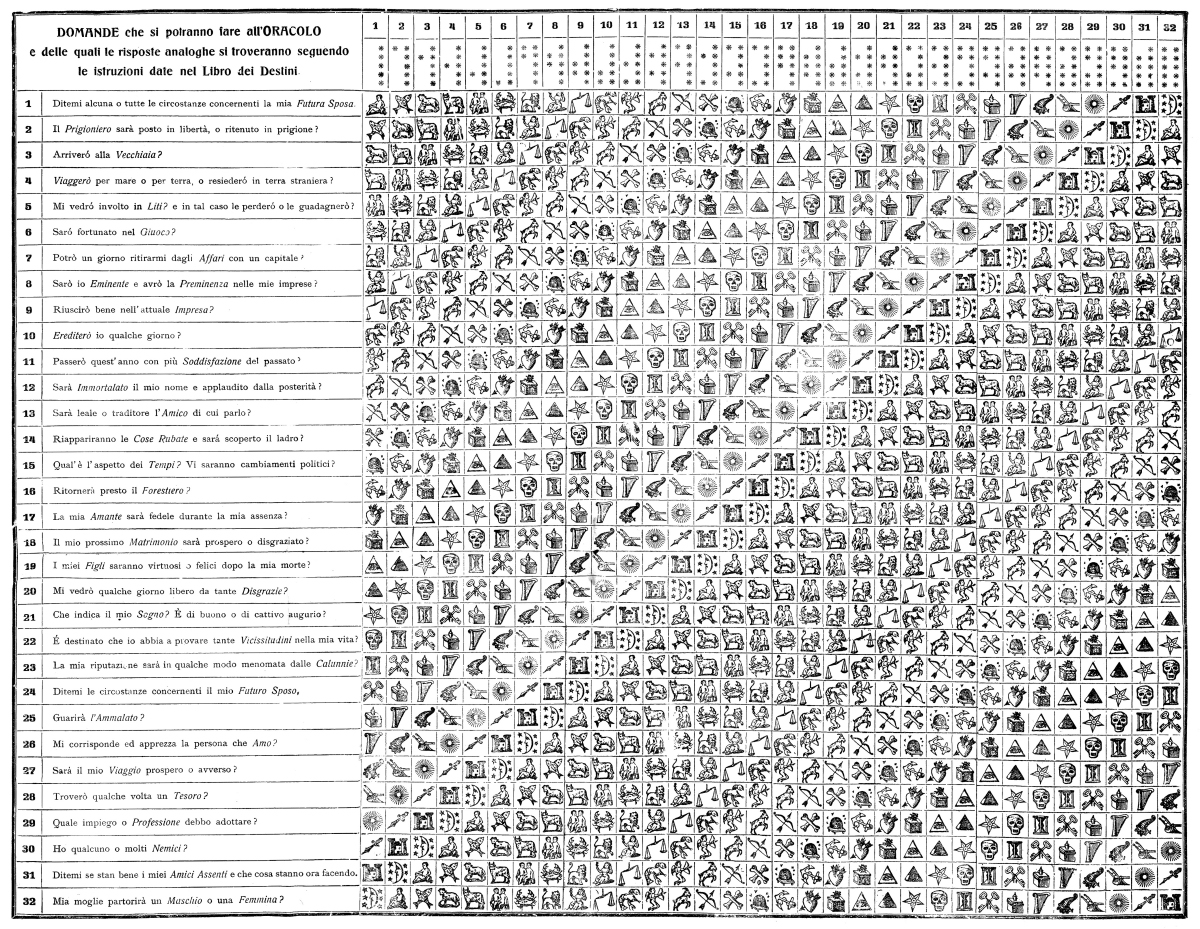 ≻ La tabella con i trentadue quesiti oracolari ↗