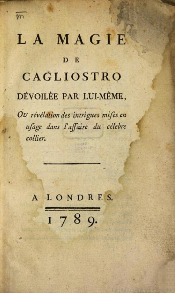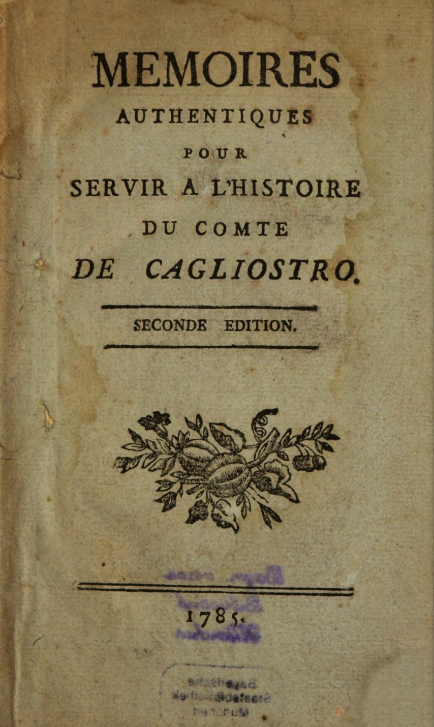 Mémoires authentiques pour servir à l'histoire du Comte de Cagliostro