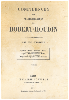 Jean Eugène Robert-Houdin fu il più grande illusionista francese di tutti i tempi. Si attribuì l’invenzione della Seconda Vista, che presentava con il figlio sonnambulo. Descrisse il processo creativo nel trattato illusionistico più raffinato dell’epoca (1859). Harry Houdini scelse il nome in omaggio a lui.