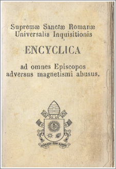 Nel 1856 papa Pio IX promulga un’enciclica contro il mesmerismo, definito “una nuova specie di superstizione” con cui per “ingannare e sedurre gli uomini s’adoperano parecchi novatori, pensando poter essi scoprire le cose occulte, lontane e future coll’arte o prestigio del magnetismo.”