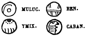 Osserviamo ora i cinque simboli a sinistra, contrassegnati dall'asterisco: se cerchiamo il loro significato sulla Relacion del francescano spagnolo, scopriamo che si tratta del nome di alcuni giorni. A parte il quarto dall'alto, gli altri si riconoscono facilmente: si tratta di Muluc, Ymix, Ben e Caban.