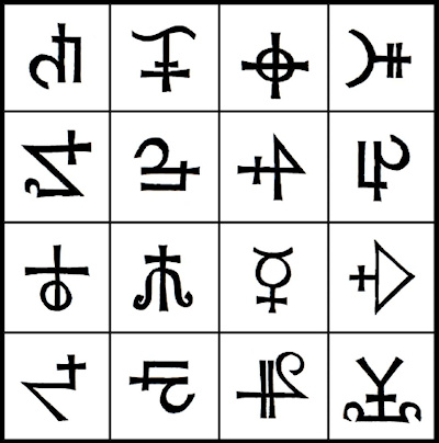 Il codice riportava diverse strisce con simboli stilizzati di questo tipo: