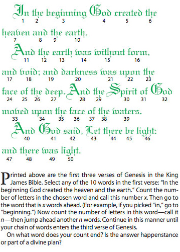 Scegliendo una parola dal primo versetto e attraversando il testo, fermandosi sulla prima parola che appartiene al terzo versetto, si finisce sempre su GOD.