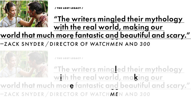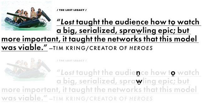 Nel corso dell'articolo vengono riportate alcune citazioni relative alla serie; le frasi sono regolarmente sottolineate, ma alcune piccole frecce isolano alcune lettere:
