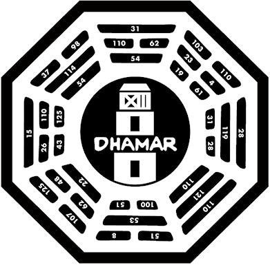 Su una delle pagine dell'articolo è riprodotto un logo del Progetto DHARMA pieno di numeri: